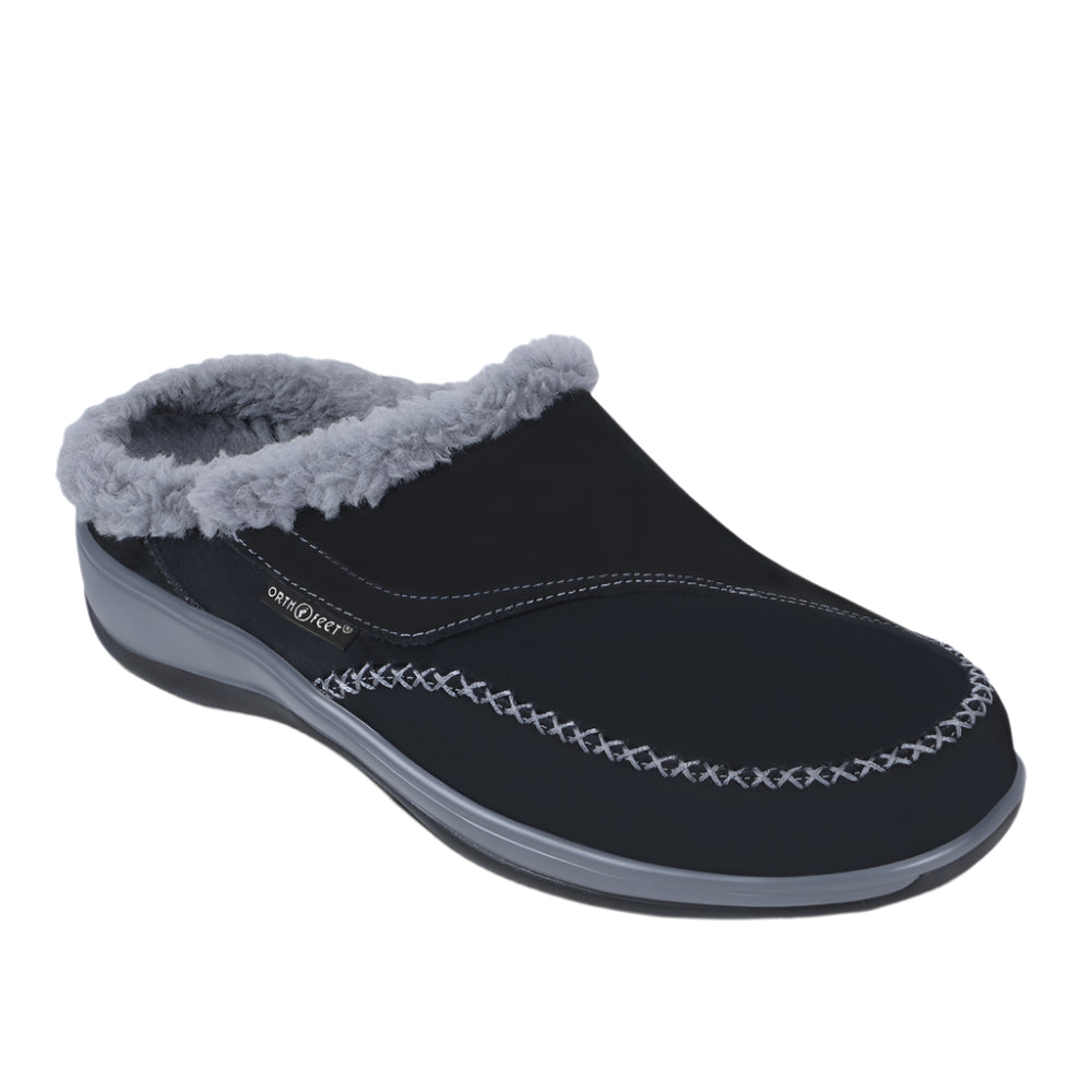 Orthofeet Women's Charlotte Slipper Black Wide/Extra Wide