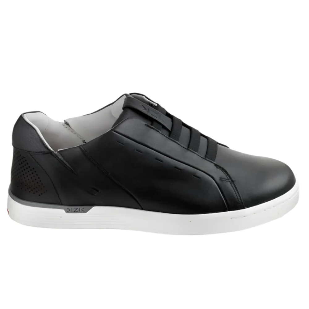 The Kizik New York is a casual men's leather slip-on sneaker with a contoured footbed and elastic straps.